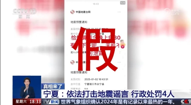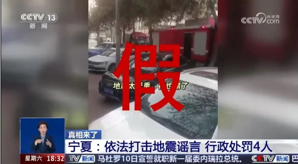 中央電視臺(tái)新聞?lì)l道《共同關(guān)注》欄目以《真相來(lái)了:這些都是謠言》為題,報(bào)道了寧夏銀川市公安機(jī)關(guān)打擊處理的4起典型網(wǎng)絡(luò)涉震謠言案件。截至1月11日,監(jiān)測(cè)發(fā)現(xiàn)各類謠言及不實(shí)信息87條,依法嚴(yán)厲快查快處網(wǎng)上涉震造謠傳謠活動(dòng),依法給予教育批評(píng)53人,治安拘留4人。