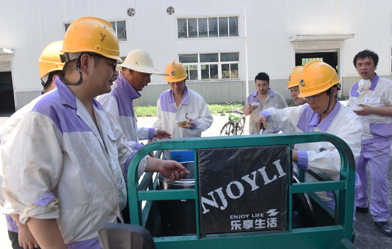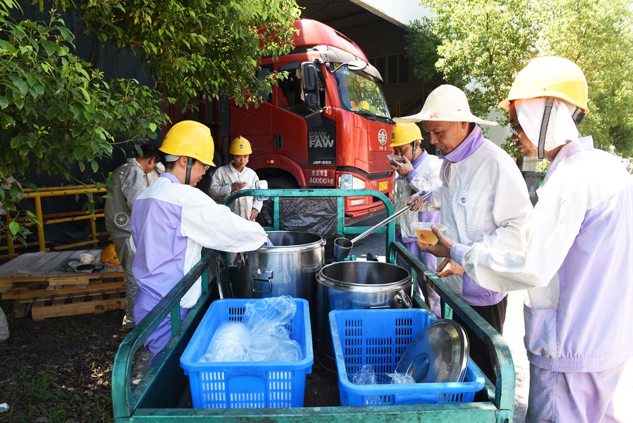 烈日炎炎,酷暑難擋,集團(tuán)公司廣大員工堅(jiān)守崗位,奮戰(zhàn)高溫。今天下午,總務(wù)部開(kāi)始為高溫一線員工送上涼爽可口的消暑湯。和往年一樣,氣溫在35℃以上的日子,總務(wù)部將在每天下午把解暑湯送到生產(chǎn)現(xiàn)場(chǎng),冰鎮(zhèn)綠豆、銀耳羹、蝦皮咸菜湯……品種每天有變化,讓員工在酷暑天感受到公司的關(guān)懷。保持旺盛干勁。
