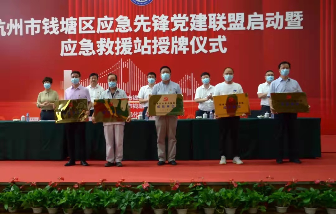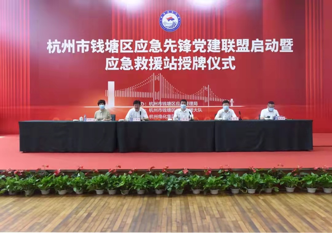 8月6日上午,杭州市錢塘區(qū)應(yīng)急先鋒黨建聯(lián)盟啟動暨應(yīng)急救援站授牌儀式在杭州電化集團有限公司活動中心舉行。儀式由錢塘區(qū)應(yīng)急管理局主辦,錢塘區(qū)消防救援大隊、杭州電化集團有限公司協(xié)辦。錢塘區(qū)區(qū)委常委、組織部長吳勇,副區(qū)長徐進,區(qū)委組織部副部長、兩新工委書記施正森,杭電化集團黨委書記、董事長、總裁蔣慧兒出席并在主席臺就坐。錢塘區(qū)應(yīng)急管理局局長葉蕭紅主持儀式。錢塘區(qū)相關(guān)機關(guān)單位、各街道,中國化學(xué)品安全協(xié)會、中國計量大學(xué)質(zhì)量與安全工程學(xué)院等聯(lián)盟指導(dǎo)單位以及150余家企業(yè)負責(zé)人和應(yīng)急救援站負責(zé)人共180余人參加儀式。